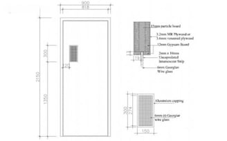 Kính cường lực chống cháy, được bổ sung thêm lưới thép chịu nhiệt, được sử dụng cho ô kính tiêu chuẩn của cửa.