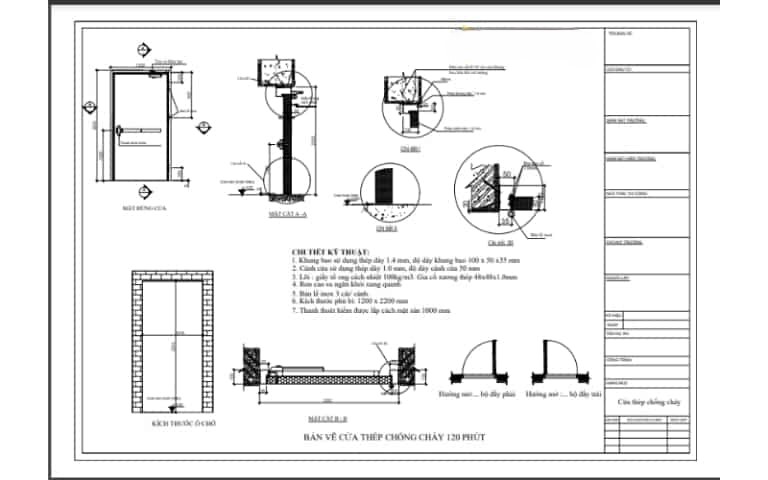 Kích thước độ dài đạt tiêu chuẩn của cửa chống cháy